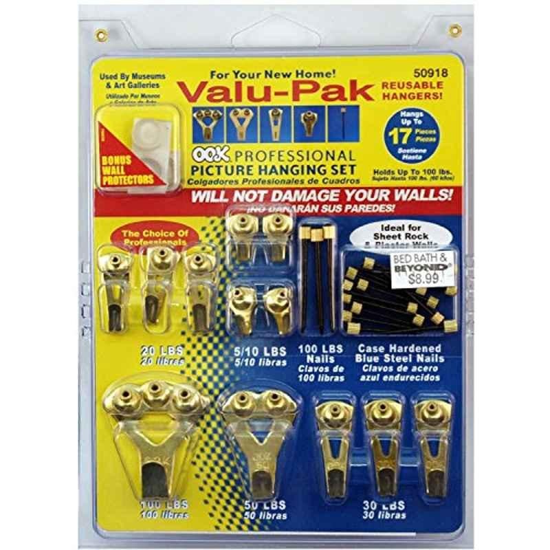 Add a touch of elegance to your home decor with the OOK 17Pcs 100lbs Stainless Steel Gold Professional Picture Hanging Set. This hardware set from the renowned brand OOK is designed for hanging items weighing up to 100 lbs. The set includes 17 pieces made of high-quality stainless steel in a luxurious gold finish. Suitable for plaster and drywall surfaces, this set is perfect for securely displaying your artwork or photos. Each package contains 1 set of 17 pieces, ensuring you have everything you need for a professional-looking display. Elevate your decorating game with the OOK 50918 Picture Hanging Set. Please note that the image is for reference only.