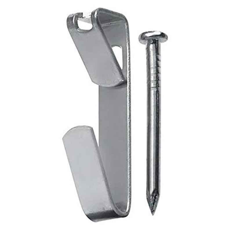 Introducing the OOK 20 Lb Stainless Steel Zinc Conventional Hanger, 50052 (Pack of 8) from our hardware collection. Made from sturdy stainless steel with a sleek silver finish, these hangers are designed to hold up to 20 lbs each. The pack includes 8 hangers, perfect for organizing your space efficiently. Please note that the image is for reference purposes only. The item code for this product is 50052. With a durable zinc finish, these OOK hangers are reliable and long-lasting. Upgrade your hanging system with the OOK 20 Lb Stainless Steel Zinc Conventional Hanger, 50052 (Pack of 8).