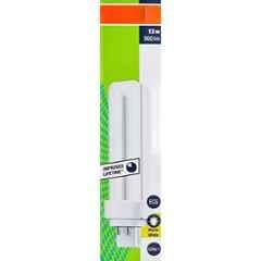 Illuminate your space with the Osram Compact 13W 4 Pin Warm White 3000K Fluorescent Lamp. This sleek and energy-efficient lamp emits a warm white light, creating a cozy atmosphere in any room. The correlated color temperature of 3000K provides a soft and welcoming glow. The compact design is perfect for smaller fixtures, making it a versatile lighting solution for your home or office. With four pins for easy installation, this fluorescent lamp is a reliable and long-lasting choice for all your lighting needs. Bring brightness and warmth to your space with Osram. (Note: Image for reference purpose only.)