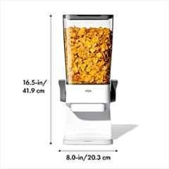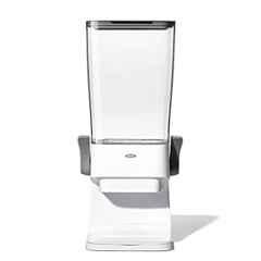 Introducing the OXO 5.5 Quarts Acrylic Clear/White Countertop Cereal Dispenser, model 11125700, a perfect addition to your kitchen storage and thermoware collection. Made from durable acrylic material, this dispenser has a capacity of 5.5 quarts, ensuring you have enough space to store your favorite cereals. The clear and white design adds a modern touch to your countertop, while allowing you to see exactly how much cereal is left. With its easy-to-use dispensing mechanism, you can say goodbye to messy cereal boxes and hello to a more organized kitchen. Upgrade your storage solutions with OXO.