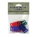 Introducing Parachute 5/8 inch Assorted Colours Cord Buckles, a must-have accessory for any DIY enthusiast or outdoor enthusiast. This pack of 5 buckles in assorted colours is perfect for securing cords and straps with ease and style. The sturdy construction ensures durability, while the vibrant colours add a fun touch to your projects. Each pack contains 5 pieces of 5/8 inch buckles, making it a convenient and cost-effective option for all your fastening needs. Please note that the image is for reference purposes only. Elevate your crafting game with Parachute cord buckles today!