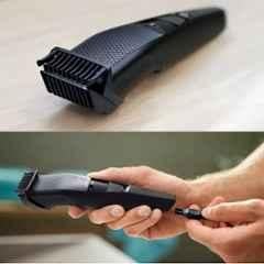 Achieve a perfectly groomed look with the Philips 3000 Series 0.5-10mm Stainless Steel Black Beard Trimmer, BT3208. This sleek and stylish trimmer features a durable stainless steel blade that effortlessly trims hair from 0.5 to 10mm in length. With a runtime of 45 minutes, you'll have plenty of time to get the perfect trim. The black color adds a touch of sophistication to your grooming routine. Item Code BT3208 from the Series 3000 by Philips is a must-have for any modern man. Please note that the image is for reference purposes only. Upgrade your grooming game with this top-of-the-line trimmer.