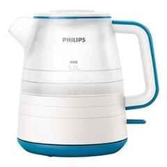 Introducing the Philips Daily Collection 1L 2000W Plastic Kettle, HD9344/14. This stylish kettle is a must-have in any kitchen, with its durable polypropylene body in a sleek Star White \u0026 Caribbean Blue colour. The 220-240 V voltage and 50-60 Hz frequency ensure quick and efficient boiling, while the 0.75 m cord length offers convenience in use. With a generous 1 L capacity and a heating element made from PP material, this kettle is perfect for everyday use. Upgrade your kitchen appliances with the trusted brand of Philips.
