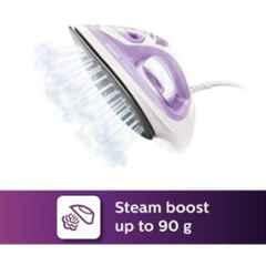 Introducing the Philips Easy Speed 2000W Purple Steam Iron, GC1026/30, the perfect choice for removing wrinkles with ease. This steam iron, with a non-stick soleplate, effortlessly glides over all types of fabric, leaving them smooth and crisp. With a steam output of 25 g/min, this iron ensures efficient and fast ironing. The powerful 2000 W motor provides quick and effective heat-up, saving you time and energy. The stylish purple color adds a pop of color to your ironing routine. Complete your household chores effortlessly with the Philips Easy Speed Steam Iron.