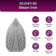 Introducing the Philips EasySpeed Plus 2400W Steam Iron, GC2147, the perfect combination of efficiency and convenience in ironing. With a powerful 2400W power consumption, this steam iron guarantees fast and effective results. The ceramic soleplate ensures smooth gliding over any fabric, while the steam output of 30g/min helps to remove even the toughest wrinkles. The 1.9m cord length provides flexibility during ironing, and the 270ml water tank capacity allows for longer ironing sessions without refilling. Upgrade your ironing experience with the Philips EasySpeed Plus 2400W Steam Iron, GC2147.