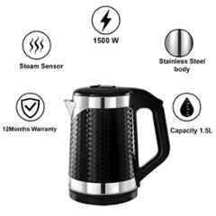 Introducing the Pringle EK Smarty 1.8L Electric Kettle, a sleek and efficient addition to your kitchen. With a generous capacity of 1.8 liters, this kettle is perfect for preparing hot beverages for the whole family. The stylish black stainless steel body not only looks great on your countertop but also ensures durability and easy maintenance. Boasting a power consumption of 1500W and operating at 240V, this cordless kettle heats up quickly and efficiently. The Pringle EK Smarty is the perfect balance of style and functionality, making it a must-have for any modern kitchen.