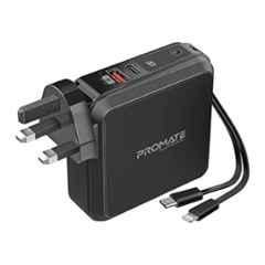 Introducing the Promate 15000mAh Black Quick Charging Power Bank with AC Plug, POWERPACK-PD20+. This high-quality power bank belongs to the IT \u0026 Electronics category and is proudly brought to you by the renowned brand, Promate. Its sleek and elegant design in black adds a touch of sophistication. The package includes a built-in 22.5W USB-C Power Delivery Cable, ensuring a hassle-free charging experience. With a battery capacity of 15000mAh, this power bank provides ample power to keep your devices charged on the go. Please note that the image is for reference purposes only. The item code for this power bank is POWERPACK-PD20+.