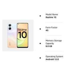Introducing the Realme 10 smartphone, a powerful device designed to elevate your mobile experience. With its sleek and elegant design, the Realme 10 is sure to turn heads. The vibrant 6.4 inch display offers stunning visuals, allowing you to immerse yourself in your favorite content. The 16 MP front camera captures crystal-clear selfies, while the 8 GB RAM ensures smooth multitasking and effortless performance. With a refresh rate of 90 Hz, every swipe and scroll is silky smooth. The Rush White color adds a touch of sophistication to this device, making it stand out from the crowd. Powered by the MediaTek Dimensity 1080 5G processor, the Realme 10 delivers lightning-fast speeds and exceptional performance. Running on the latest Android 12.0 operating system, you can enjoy all the latest features and updates. Explore the possibilities with the Realme 10 smartphone.