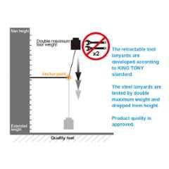 Introducing the King Tony Retractable Tool Lanyard - designed for ultimate convenience and safety in the workplace. This retractable lanyard features 2 lock snaps to securely hold your tools in place, preventing accidents and enhancing productivity. The 79A21-30 item code ensures you're getting a high-quality product that is built to last. As a part of our Other Hand Tools category, this lanyard offers a practical solution for keeping your tools within reach while allowing freedom of movement. The King Tony brand is renowned for its durability and reliability, ensuring that your tools are always protected. Please note that the image is for reference purposes only, and the actual product may vary.