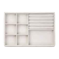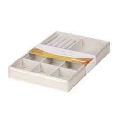 Introducing the Richards 8 Compartment Faux Leather Champagne Jewellery Storage Organizer Tray, perfect for keeping your precious accessories organized in style. This rectangular tray is made of luxurious faux leather in a elegant champagne color, featuring 8 compartments to neatly store your jewelry. The dimensions of this organizer are 12x8x1.5 inches, providing ample space for all your items. Please note that the image is for reference purposes only. Elevate your storage game with this sophisticated Richards organizer, and add a touch of glamour to your dressing table. Shop in the Storage Bins \u0026 Boxes category from the trusted brand Richards.