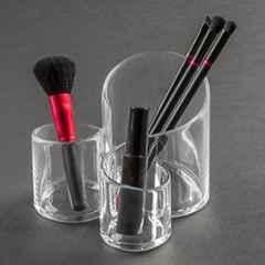 Keep your bathroom clutter-free with the Richards Homewares 3 Compartment Clear Brush Holder. This sleek and stylish storage solution is perfect for organizing your brushes, combs, and other beauty essentials. The clear design allows you to easily see what's inside, while the three compartments help you keep everything separated and organized. Measuring 5.5x5.75x4.7 inches, this brush holder is compact enough to fit on your countertop or vanity. The item code for this brush holder is 987700. Please note that the image is for reference purposes only. Stay organized and stylish with Richards Homewares.