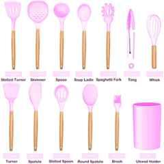Package Contents | Set Contains Skimmer, Slotted Turner, Spoon, Soup Ladle, Spaghetti Spoon, Tong, Whisk, Turner, Spatula, Slotted Spoon, Round Spatula, Brush & Utensils Holder |