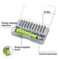 Package Contents | Set Contains 1x32pcs Screwdriver Set (Includes Phillips Screwdriver Bit: Ph000 Ph00 Ph0 Ph1 Ph2, Slotted Screwdriver Bit: 1.5mm 2.0mm 2.5mm 3.0mm 4mm, Torx Screwdriver Bit: T4 T5 T6 T8 T9 T10, Hex Screwdriver Bit: H1.5 H2.0 H2.5 H3.0 H3.5 H4.0, Y Shape Screwdriver Bit: Y2.0mm Y3.0mm, Triangular Screwdriver Bit: 2.0mm 2.3mm, Penta lobe Screwdriver Bit: 0.8mm 1.2mm 2.0mm, U Shape Screwdriver Bit:u2.3mm, 1xExtension Bar, 1xScrewdriver Handle) |