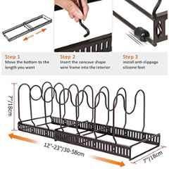 The Silicone Coating Can Protect Your Kitchen Utensils & Prevent Rust. U Shape Groove Design with Non-slip Silicone Pad of the Pot Lid Rack is Able to Hold Steadily in Place.