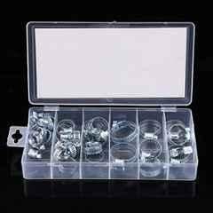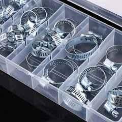 There is a Plastic Storage Box with Separated Compact Space for Different Size of Hose Clamps to Make These Clamps Well-organized & Easy to Find.
