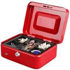 Keyed Money Box Holds Cash & Trinkets Safely with a Convenient Carrying Handle for Easy Transportation.