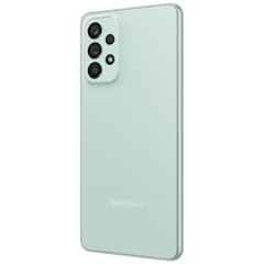 Elevate your mobile experience with the Samsung A73 6.7 inch 256GB/8GB Mint FHD 5G Smartphone. With a stunning display size of 6.7 inches and a resolution of 1080x2400p, every image and video will come to life in vibrant detail. The front camera boasts an impressive 32 MP for crystal-clear selfies, while the fingerprint sensor ensures your device stays secure. The dimensions of 163.7x76.1x7.6 mm make it sleek and portable. This smartphone features Hybrid Dual SIM capability, allowing for versatile connectivity options. With 8 GB of RAM, you'll enjoy seamless multitasking and smooth performance. Experience the future of mobile technology with the Samsung A73.