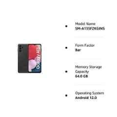 Samsung Galaxy A13 4GB/64GB Black Smartphone, SM-A135FZKGINS will match all your Mobile Phones requirements in UAE. With lots of features and excellent functioning Samsung Galaxy A13 4GB/64GB Black Smartphone, SM-A135FZKGINS will never disappoint you. This product is one of the best Mobile Phones from Samsung available at Moglix.ae. This product meets all the company standards when it comes to safety and durability. Get your hands on new Samsung Galaxy A13 4GB/64GB Black Smartphone, SM-A135FZKGINS at Moglix.ae and enjoy a hassle-free online shopping experience.