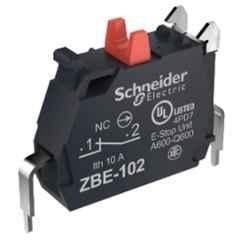 Upgrade your industrial switches and controls with the Schneider 1-NC Captive Screw Clamp Terminal Single Contact Block, ZBE102N from the Harmony XB4 range. This high-quality contact block features an operating force of 3.5 N and electrical durability for up to 1 million cycles. The AC-15 rated block has an operating rate of less than 3600 cycles per hour and a load factor of 0.5. In the standard version, it includes protective treatment and has a mechanical durability of 5 million cycles. Weighing just 0.011 kg, it also includes short circuit protection with a 10 Amp Cartridge Fuse Type gG. Trust Schneider for reliable industrial products.