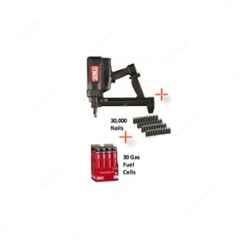 Introducing the Senco SGP40L 6V 40mm Black Gas Concrete Nailer, a powerful and efficient tool for all your construction needs. This pneumatic tool is a part of our wide range of innovative products in the Pneumatic Tools category. With its sleek black design and dimensions of 459x139x340 mm, it is compact yet sturdy. The 6V battery voltage ensures optimal performance, allowing you to work efficiently without interruptions. The package includes 1x Concrete Nail Gun, 2 x Battery, 1x Charger, 1x Carrying Case, and 1x Wrenches, providing you with everything you need for your projects. Additionally, we have included 30000x Nails and 30x Gas Fuel Cells, ensuring you never run out during your work. The Senco SGP40L operates at a voltage of 230 V AC with a frequency of 50 Hz, making it suitable for various power supplies. With the model name SGP40L, this concrete nailer is built to meet your expectations and deliver exceptional results. Its stunning black color adds a touch of elegance to any workspace. Elevate your construction projects with the reliable and high-quality Senco SGP40L 6V 40mm Black Gas Concrete Nailer.