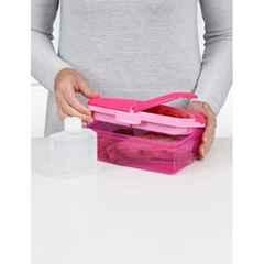 Introducing the Sistema 1.5L Plastic Pink Slimline Quaddie Colored Box, Model 23965, perfect for those on the go. This storage container is designed to make transporting your lunch and snacks a breeze - whether you're heading to work, school, or the park. The vibrant pink color adds a pop of fun to your daily routine, while the 1.5L capacity ensures you have plenty of room for all your favorite treats. Made from durable plastic, this quaddie box is a sustainable alternative to single-use plastics like bags, cling film, and foil. Say goodbye to waste and hello to convenience with Sistema.