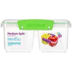 Introducing the Sistema 835ml Green Medium Split To Go Food Storage Container, Model 21620. This container is perfect for storing and transporting your favorite meals with ease. With a generous capacity of 835ml, you can pack a variety of foods without worrying about running out of space. The vibrant green color adds a pop of color to your kitchen and the durable construction ensures long-lasting use. The innovative split design allows you to keep different foods separate, making it ideal for meal prep or on-the-go dining. Stay organized and stylish with the Sistema 835ml Green Medium Split To Go Food Storage Container.