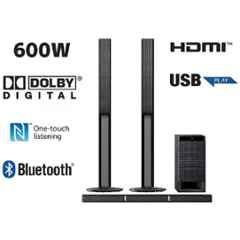 Enhance your home entertainment experience with the Sony 600W 5.1 Ch Black Dolby Digital Soundbar with Tallboy Speaker, HT-RT40. This powerful soundbar boasts a 600W power output and 5.1 channels for immersive audio. The sleek black design adds a touch of elegance to any room. Connect wirelessly with Bluetooth and NFC, or use the USB, HDMI, Audio Input, and MIC Jack for added versatility. The Sony HT-RT40 comes with a TV System of PAL, ensuring compatibility with your existing setup. Elevate your audio experience with this top-of-the-line soundbar from Sony. Item Code: HT-RT40. (Note: Image for reference purpose only)