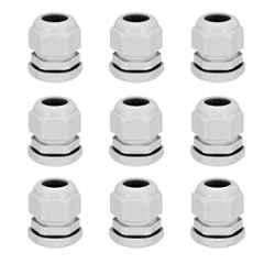 Upgrade your wire and cable accessories with the Sourcing Map 12x27mm Plastic White PG21 Waterproof Cable Gland. This pack of 9 cable glands is perfect for ensuring your cables stay protected from water damage. The cable range of 13-18 mm makes it versatile for various applications. Made of durable plastic, these cable glands have a thread length of 12 mm and a diameter thread of 27 mm. Designed for use in junction boxes or any other application where water could potentially enter live electrics, these cable glands are a must-have for any DIY enthusiast or professional. Add a touch of white to your cable management with Sourcing Map. Please note, image is for reference purposes only.