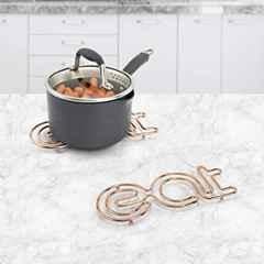 Introducing the Spectrum Diversified A25279 Steel Copper Eat Trivet, the perfect addition to your Kitchen \u0026 Pantry Supplies. This stylish trivet measures 25.6x20.09x1.4 cm and comes in a beautiful copper colour. The model number is A25279 and it weighs 222 g, making it easy to move around your countertops and kitchen tables. Please note that the images are for reference only, and the actual product may vary slightly. To keep this trivet looking its best, simply wipe clean with a damp cloth and towel dry. Add a touch of elegance to your kitchen with the Spectrum Diversified Eat Trivet.