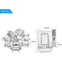 Introducing the Generic Stainless Steel Silver Strapping Seal, the perfect addition to our Fastener Clamps collection. Manufactured with high-quality stainless steel, this pack of 100 seals guarantees durability and long-lasting performance. The sleek silver color adds a touch of elegance to any application. Measuring 43x25x12 mm, these seals are designed to fit a 19 mm band securely. Crafted with Grade 201 stainless steel, they ensure reliable and efficient strapping. Please note that the image provided is for reference purposes only. Upgrade your clamping experience with the Generic Stainless Steel Silver Strapping Seal and enjoy its precision and strength!
