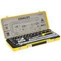 Upgrade your toolbox with the Stanley 24 Pcs 1/2 inch Socket Set, STMT74184-8. This comprehensive set includes a variety of 1/2 inch 6 point standard sockets ranging from 8mm to 32mm, a 1/2 inch SD Pear Head Ratchet NP9, 1/2 inch extensions, a universal joint, a spark plug socket, and a swivel handle - all neatly organized in a durable metal tin box. This hand tool kit is perfect for DIY projects, automotive work, and more. The compact dimensions of 17.8x43x5.2 cm make it easy to store and transport. Trust the Stanley brand for quality tools that will last. Item Code: STMT74184-8. Please note, the image is for reference only.
