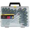 Introducing the Stanley Fatmax Parallel Flared Philips Pozi Set, designed for all your hand tool needs. This 12-piece set from the renowned brand Stanley is perfect for any DIY enthusiast or professional tradesman. The set includes a variety of sizes and types of screwdrivers, including parallel, flared, Philips, and Pozi, ensuring you have the right tool for any job. The Model 0-65-426 is built to last with durable materials and a comfortable grip. Say goodbye to struggling with stubborn screws and hello to easy, efficient work with the Stanley Fatmax Parallel Flared Philips Pozi Set.
