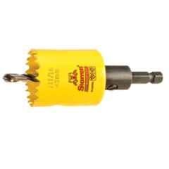 Introducing the Starrett Deep Cut 43mm Yellow Bi Metal Hole Saw with Arbor, ADCH1116, perfect for all your drilling needs. This durable holesaw features a steel body and is ideal for solid materials or tubes with a wall thickness greater than 3mm. The bright yellow color makes it easy to spot in your toolbox. Suitable for a variety of applications including metal, non-ferrous metals, cast iron, wood, nail embedded wood, veneer, plastic, acrylic, fiberglass, formica, plaster, and suspended floors wood. The cutting depth of 51mm ensures precision in your projects. Get the job done right with the Starrett ADCH1116 holesaw.