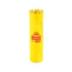 Introducing the Starrett Fast Cut 14mm Yellow Bi Metal Hole Saw, perfect for those looking for a reliable and high-quality cutting tool. This hole saw, with an item code of FCH0096-G, is designed for a variety of applications including metal, non-ferrous metals, cast iron, wood, nail embedded wood, veneer, plastic, acrylic, fiberglass, Formica, plaster, and suspended floors wood. Made from durable steel body material and featuring HSS teeth, this hole saw is ideal for cutting through stainless and mild steel sheets and tubes with a wall thickness of up to 3mm. The vibrant yellow color makes it easy to spot in your toolbox, and with a cutting depth of 41mm, you can tackle even the toughest cutting jobs with ease. Upgrade your cutting tools with Starrett Holesaws.