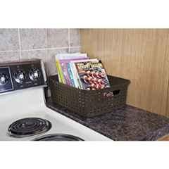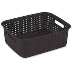 Introducing the Sterilite Plastic Brown Espresso Short Weave Basket 110979, a versatile and stylish storage solution for any room in your home. Made from durable plastic in a rich brown espresso color, this basket is perfect for organizing small items like office supplies, toiletries, or pantry essentials. The short weave design adds a touch of texture and sophistication to your storage space, while the sturdy construction ensures long-lasting use. Ideal for use in the bedroom, bathroom, living room, or kitchen. Keep your belongings neat and tidy with the Sterilite Plastic Brown Espresso Short Weave Basket 110979 from the Storage Bins \u0026 Boxes collection by Sterilite.