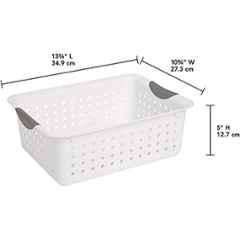 Introducing the Sterilite Plastic White Ultra Basket Storage Bin Organizer, the perfect solution for keeping your space clean and organized. This medium-sized storage bin is made of durable plastic, ensuring long-lasting use. Its sleek white color adds a touch of elegance to any room while providing ample storage space. With dimensions measuring 14x11x5 inches, this basket is ideal for storing a variety of items such as toys, clothes, or office supplies. The model number 16248006 guarantees quality and reliability from the trusted brand Sterilite. Say goodbye to clutter and hello to a beautifully organized space with the Sterilite Plastic White Ultra Basket Storage Bin Organizer.