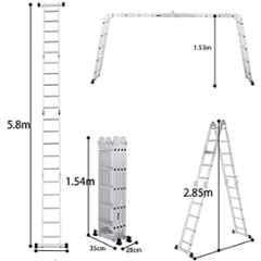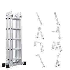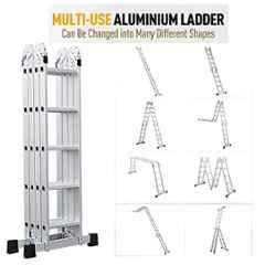 Stay safe and reach new heights with the Sunrise 530lbs 4x5 Step Aluminium Silver Multi-Purpose Scaffold Adjustable Telescoping Extension Ladder. This versatile ladder is perfect for all your indoor and outdoor needs, from painting walls to fixing roofs. With a load capacity of 530 lbs and a sturdy aluminium construction, you can trust this ladder to support you on any job. The adjustable telescoping design allows you to customize the height to suit your needs, while the 4x5 step scaffold provides a stable platform for you to work from. Get the job done with confidence using the Sunrise ladder. Image for reference purposes only.
