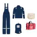 Stay protected on the job with the Tarasafe BLOKARC-VLM45-KTNOF-3XLNV HRC 4 Vallum 45 Cal Arc Flash Kit in Size 3X-Large. This work uniform, from the trusted brand Tarasafe, is certified for Arc Flash Protection with NFPA 2112 \u0026 EN 61482-1-2 certifications. The kit includes an Electrical \u0026 Gear Bag with dimensions of 62x32x37 cm, a Hood Bag, and comes in a sleek Navy Blue color. The model BLOKARC-VLM45-KTNOF-3XLNV features a fabric weight of 470 GSM (± 5%), ensuring both comfort and safety. Upgrade your workwear with this high-quality and reliable arc flash kit.