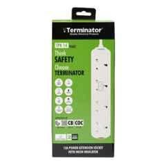 Introducing the Terminator 5m 13A 4 Way UK Power Extension Socket, TPB 14-5M from our Switches \u0026 Sockets collection. This durable and reliable power extension socket features a cable length of 5m and a current rating of 13 Amp, making it ideal for a variety of electronic devices. The sleek design and sturdy construction of the Terminator brand ensures long-lasting performance. The TPB 14-5M model provides four additional power outlets for your convenience, allowing you to easily power multiple devices at once. Upgrade your home or office with the Terminator 5m extension socket for efficient and organized power distribution.