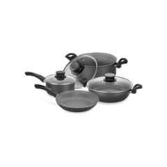 Upgrade your kitchen with the Tramontina 7Pcs Paris Aluminium Cookware Set in sleek black. This set includes essential pieces such as a frying pan, skillet, casserole, and saucepan, all with matching lids. The durable aluminium construction ensures even heat distribution for all your cooking needs. The Starflon T1 coating provides a non-stick surface for easy cooking and cleaning. Perfect for everyday use, this set is a must-have for any home chef. Add a touch of elegance to your kitchen with the Tramontina Paris Cookware Set. Item Code: 20599685. Model: Paris. Please note, image is for reference only.