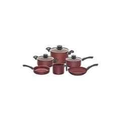 Elevate your kitchen with the Tramontina 9Pcs Paris Aluminium Cookware Set. Crafted from durable aluminium in a sleek brown and black color scheme, this set includes essential pieces for all your cooking needs. The set features a variety of pans and pots, all with convenient lid closures for efficient cooking. The package contents include a stock pot, frying pans, sauce pans, casserole dishes, and a multiuse boiler for a total of 9 pieces. Whether you're boiling pasta or sautéing vegetables, this cookware set is sure to impress. Add a touch of style to your kitchen with Tramontina.