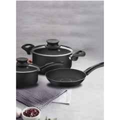 Enjoy the Best Moments in the Kitchen with Tramontana's Paris 5-Piece Black Aluminium Cookware Set with Interior & Exterior Starflon Excellent Nonstick Coating! These Pieces are Perfect for Daily Use As They are Made of Aluminium with a Thickness that Provides Fast, Uniform Cooking & Ensure Greater Convenience in the Kitchen. the Starflon Excellent Nonstick Coating is Non-Toxic & Prevents Food from Sticking to the Pans, Which Makes Them Easy to Clean & Longer-Lasting. the Saucepan & Casserole Dish Comes with Tempered Glass Lids with a Steam Vent & Stainless Steel Rim that Make Cooking Easier by Letting You See the Food While It's Cooking. the Handles & Knobs are Made of Heat-Resistant Bakelite so They Don't Get Too Hot, Making the Pieces Safer & More Comfortable to Use. Best of All,.
