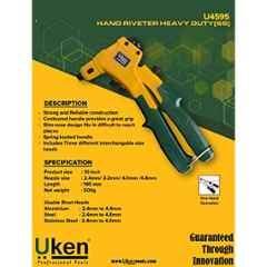 Introducing the Uken 10 inch Heavy Duty Hand Riveter, the perfect addition to your collection of hand tools. This sturdy and reliable riveter is designed to make your DIY projects a breeze. With a size of 10 inches and a weight of 500g, it offers easy handling and versatility. The Uken brand is known for its quality and durability, ensuring that this hand riveter will last for years to come. Whether you're working on metal, plastic, or other materials, this riveter will get the job done with ease. Please note, the image is for reference only. Add the Uken 10 inch Heavy Duty Hand Riveter to your toolbox today for professional results every time.
