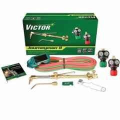 The Victor Journeyman-II Heavy Duty Gas Cutting \u0026 Welding Set, 0385-0542, is a comprehensive welding accessory kit that is perfect for professional welders. The package includes 1x EDGE 2.0 992 150 psig Oxygen Regulator, 1x EDGE 2.0 993 15 psig Acetylene Regulator, 1x 315FC + Handle w/ Built-ln FBAs \u0026 Check Valves, 1x CA2460 + Cutting Attachment w/ 90 deg C Head, 1x 1-1-101 Cutting Tip \u0026 Tip Charts, 2x 2-W Welding Nozzle, 1x 20 ft. of 1/4 Inch Grade T Dual Welding Hose, 1x Goggles, 1x Spark Lighter, 1x Tip Cleaners, 1x VICTOR Cutting, Heating \u0026 Welding Guide. This set is essential for any welding project and is easy to use. Get your Victor Journeyman-II Gas Cutting \u0026 Welding Set today!