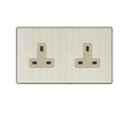 Introducing the Vmax 13A Golden \u0026 Aluminium Double Switch Socket, a sleek and stylish addition to your home or office. This double switch socket features a pin size of 0.6mm and a panel made of durable aluminium material. The beautiful golden and aluminium color combination adds a touch of elegance to any room. Please note that the image is for reference purposes only. With a current rating of 13 Amp, this switch socket is not only aesthetically pleasing but also highly functional. Upgrade your space with the Vmax 13A Golden \u0026 Aluminium Double Switch Socket for a perfect blend of style and quality.