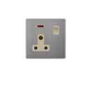 Introducing the Vmax 15A Golden \u0026 Stainless Steel Switch Socket with Neon, a stylish and functional addition to your home or office. With a size pin of 0.6mm and a panel made of durable aluminium, this switch socket is designed to last. The elegant golden and stainless steel color will complement any decor, adding a touch of sophistication to any space. Please note that the image is for reference only. With a current rating of 15 Amp, this switch socket is perfect for powering your electronics and appliances. Upgrade your switches and sockets with the Vmax brand for quality and style.