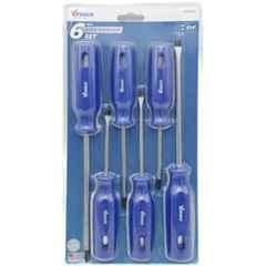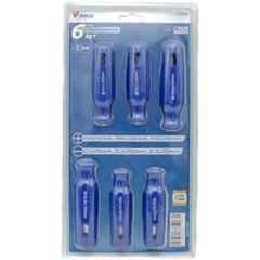 Introducing the VTools 6 Piece Screwdriver Set, perfect for all your home and professional needs. The set includes 75, 100, and 150mm screwdrivers in both Phillips and Slotted head styles, making it versatile for any task. The magnetic tips ensure a secure grip on screws, while the non-slip comfortable handles provide maximum control and comfort during use. Made from durable CrV material and featuring a sleek blue color, this set is not only functional but stylish. Item Code VT2216. Please note, the image is for reference purposes only. Upgrade your toolbox with the VTools Screwdriver Set today!