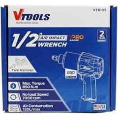 Introducing the VTOOLS 1/2inch 7000rpm Blue Lightweight Twin Hammer Air Impact Wrench, VT6105, a versatile and reliable tool designed for the automotive industry. This impact wrench is perfect for all your repair and tire changing needs. With its impressive no-load speed of 7000 rpm, you can get the job done quickly and efficiently. The sleek blue color not only adds a touch of style but also ensures easy visibility in any workshop environment. The package includes everything you need for auto repair, tire changes, and other automobile tasks. Please note that the image provided is for reference purposes only. The item code for this powerful impact wrench is VT6107. With a drive size of 1/2 inch and a torque of 850 Nm, the VTOOLS impact wrench is a must-have for any professional or hobbyist in the automotive industry.