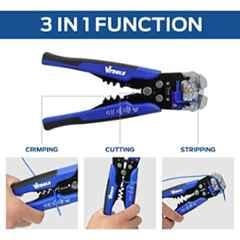 Introducing the VTOOLS Alloy Steel 3-in-1 Self-Adjusting Wire Stripper Tool, model VT2192, designed for stripping 10-24 AWG wire effortlessly. Made from high-quality alloy steel, this tool is durable and reliable for all your wire-stripping needs. The self-adjusting feature allows for quick and easy stripping without the need for manual adjustments. Suitable for 10 to 22 AWG wire, this versatile tool is a must-have for any electrician or DIY enthusiast. Please note that the image is for reference purposes only. Upgrade your toolbox with the VTOOLS Wire Stripper - the perfect combination of quality and convenience.