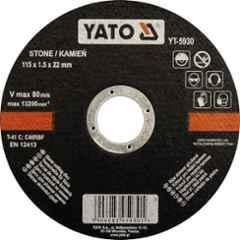 Introducing the Yato 125x3.2x22mm Stone Cutting Disc, YT-5933, a top-notch cutting tool for your precise cutting needs. This cutting disc is a part of our cutting discs and wheels category, designed to provide excellent cutting performance and durability. With the trusted brand name 'Yato' and a size of 125mm, this disc ensures efficiency and reliability during any cutting task. Its socket type is also 125mm, offering a seamless fit with compatible tools. Please note that the images provided are for reference only, and the actual product may vary slightly. The hole diameter of 22mm allows for easy installation, and the item code YT-5933 ensures accurate identification. As a cutting disc, it boasts a thickness of 3.2mm, making it ideal for various stone cutting applications. Trust Yato to deliver exceptional quality and precision with this cutting disc.